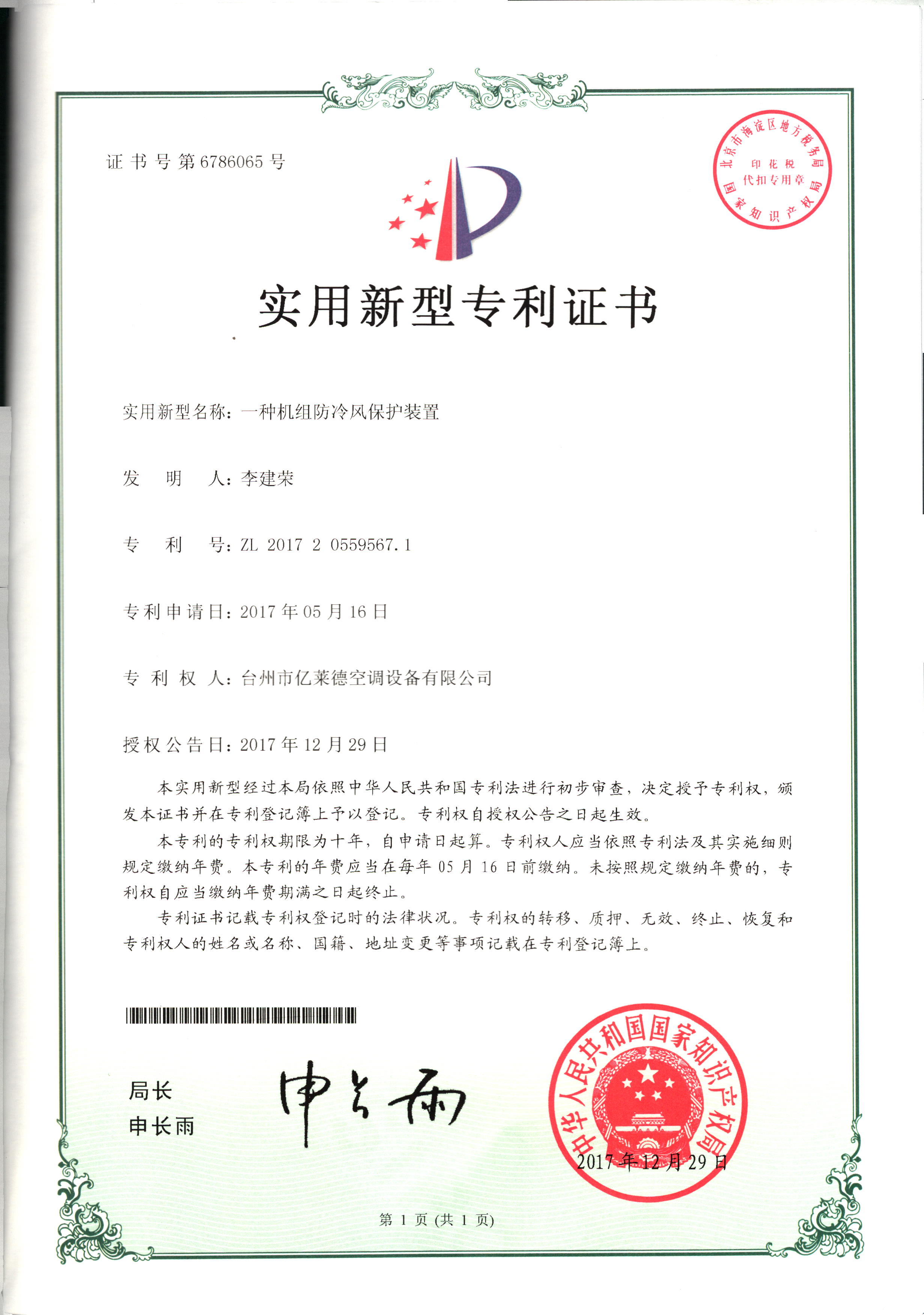 實用新型專利證書--一種空調(diào)室內(nèi)...
